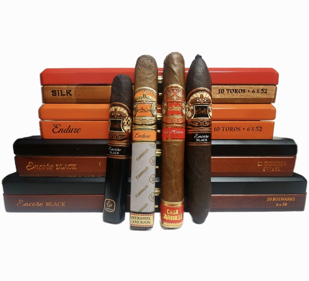 If you’ve been waiting for a cigar experience that delivers legacy, innovation, and flavor in every draw — your time has come.Presenting our Casa Carrillo 2025 Rare Sampler: four exceptional cigars that embody what makes Casa Carrillo a name to trust. Whether you’re looking to explore new blends or savor something familiar, this sampler brings together the best of the best from Casa Carrillo! Here’s what you’ll get: La Historia Silk — This elegant toro (6″ × 52) is wrapped in Ecuador Habano and blended with filler tobaccos from Nicaragua, Pennsylvania, the Dominican Republic, and Mexico. Born from conversations with women in the cigar community, this cigar is Inspired by Women. Blended for All. Smooth, medium-bodied, and beautifully balanced; a perfect bridge between sophistication and richness. Endure Toro — Crafted with a prized Meerapfel Cameroon wrapper, plus premium Nicaraguan binder and fillers, this cigar is a narrative in smoke: resilience, heritage, artistry. Medium body with layered flavors — earth, spice, cream, floral sweetness — with a rich finish. Encore Black Cigarrors — Bold and dark, this version of Encore pushes the envelope. Wrapped in a Connecticut Broadleaf Maduro, with San Andrés binder and Nicaraguan fillers from Condega, Estelí, and Jalapa, it’s a full-bodied companion for those nights when you want flavor with intensity. Expect notes of chocolate, pepper, toast, and richly layered finishes. Encore Black Bulwarks — All the same pedigree and blend as the regular Encore Black, but in a larger 6×58 perfecto format, giving you a slower burn, more transitions, and more moments. It’s the ultimate expression for those who want to savor every third, every nuance |